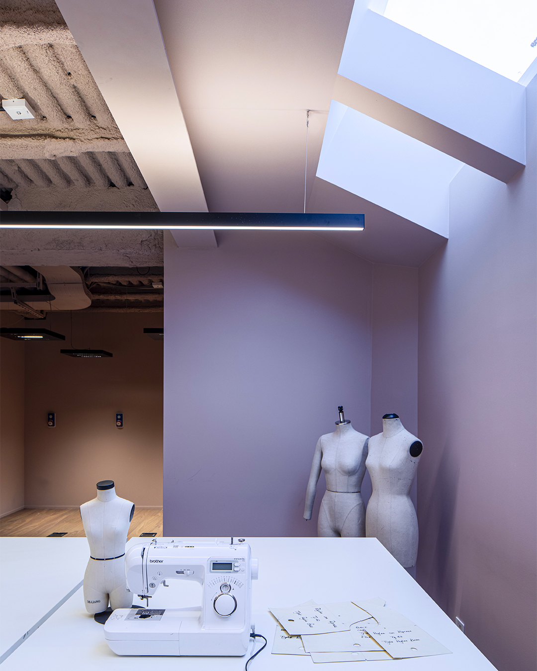 La filosofia Archi-tech lighting si esprime qui nella sua forma più pura. All'interno delle sale di Palazzo Turati, la luce non è solo un servizio, ma un elemento progettuale che definisce i volumi e garantisce una resa cromatica perfetta, essenziale per il lavoro sui materiali e sui colori. Ogni corpo illuminante è stato inserito con discrezione, valorizzando i soffitti e le proporzioni storiche senza mai risultare invasivo.